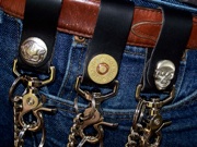 Biker Wallet/Key Chain with Heavy Duty 18” Chain and Leather Attachment Loop for easy snap on and off. The Scissor/Trigger Snap and quality Split Rings ensure that your keys and wallet will remain with you. Contact us or leave special instructions on your order page for custom chain length at no extra charge.